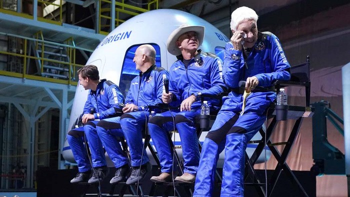 Empat orang ini meluncur ke luar angkasa dengan New Shepard, sebuah roket yang dikembangkan perusahaan milik Bezos, Blue Origin, dari sebuah lokasi di gurun Texas.