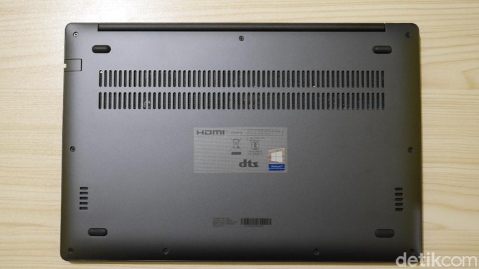 Bodi bawahnya berisi lubang ventilasi untuk kipas pendingin dan juga lubang speaker pada bagian kiri dan kanannya. Foto: detikINET/Anggoro Suryo Jati