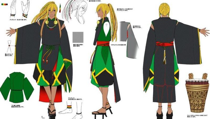 Karakter-karakter samurai yang dibuat Yamamoto dan timnya itu pun mencuri atensi publik. Salah satunya karakter samurai yang menggambarkan Jamaika ini. Dok. World Flags via BBC Indonesia.