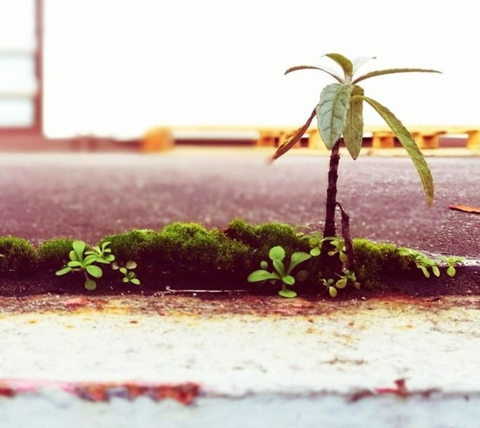 Sepetak lumut di halaman belakang yang terlihat seperti pulau tropis kecil dengan pohon kelapa. Foto: Brightside