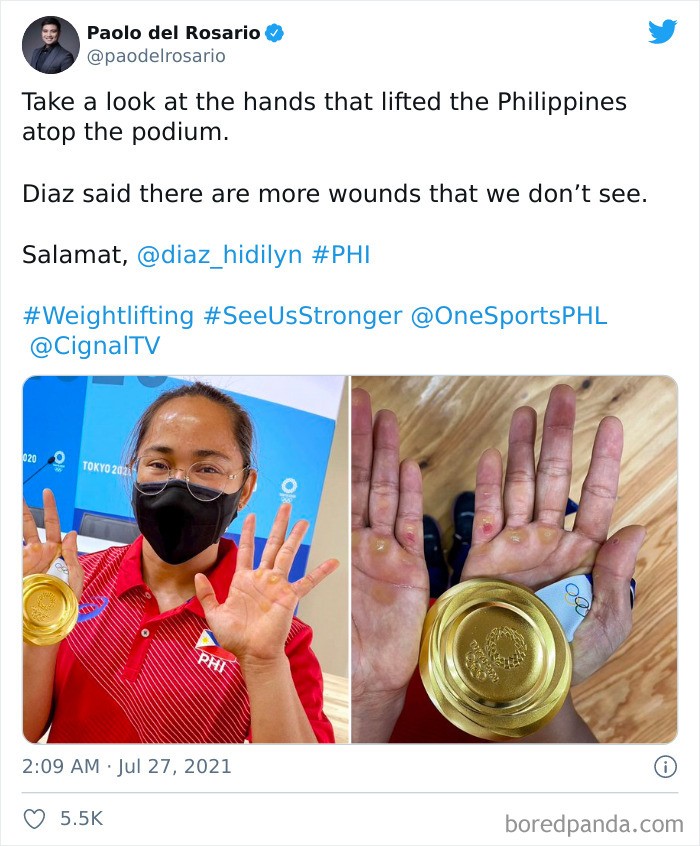 Inilah bukti perjuanagn Hidilyn Diaz saat meraih emas pertama untuk Filipina di ajang Olimpiade. Foto: dok Bored Panda