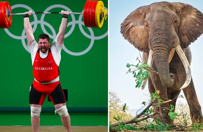 Angkat berat. Rekor manusia: 485 kg oleh Lasha Talakhadze asal Georgia. Rekor hewan: 1.000 kg oleh gajah Afrika. Foto: Sciece Focus