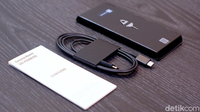 Tidak ada charger, hanya diberikan buku petunjuk, kabel data USB Tyoe C dan SIM card injector. Foto: Adi Fida Rahman/detikINET