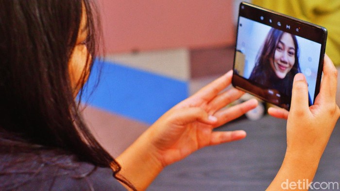 Mengusung kamera di dalam layar, ukurannya 4 MP. Foto: Adi Fida Rahman/detikINET