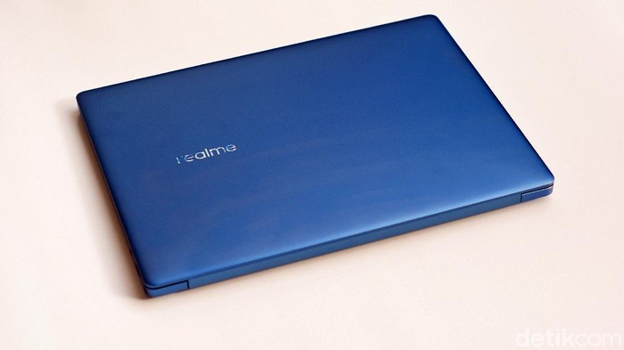 Realme Book yang bertandang ke redaksi detikINET varian Intel Core i5 gen ke-11 berwarna real blue. Foto: Adi Fida Rahman/detikINET