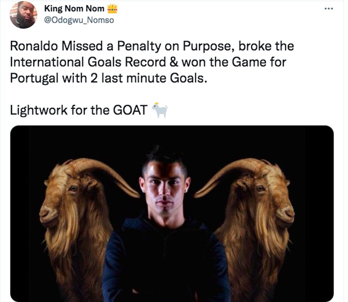 Ronaldo sengaja gagal penalti untuk mencetak dua gol, tulis netizen ini. Foto: Twitter