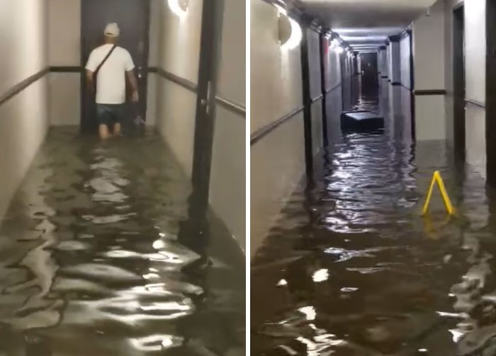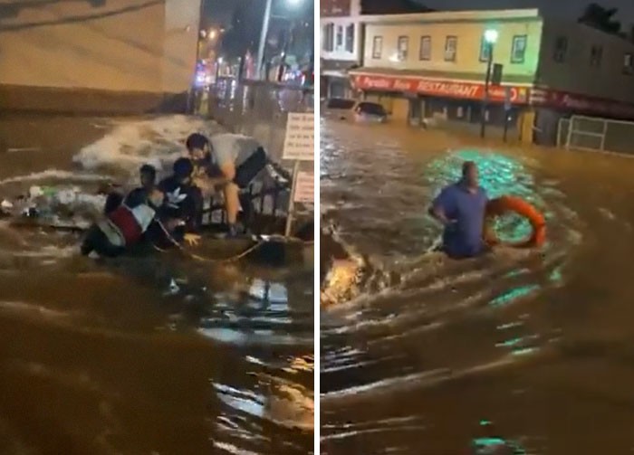rekor curah hujan, yang memicu peringatan darurat banjir bandang yang belum pernah terjadi sebelumnya untuk New York City, telah mengubah jalan-jalan menjadi sungai dan menutup layanan kereta bawah tanah saat banjir mengalir dari platform ke rel. Rumah sakit pun terendam banjir. Foto: Bored Panda