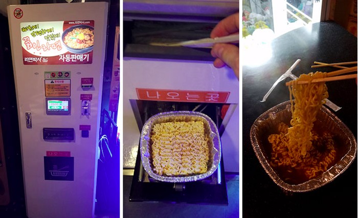Mesin dispenser yang dapat mengeluarkan mi instan yang sudah siap untuk dimakan. Foto: Bored Panda