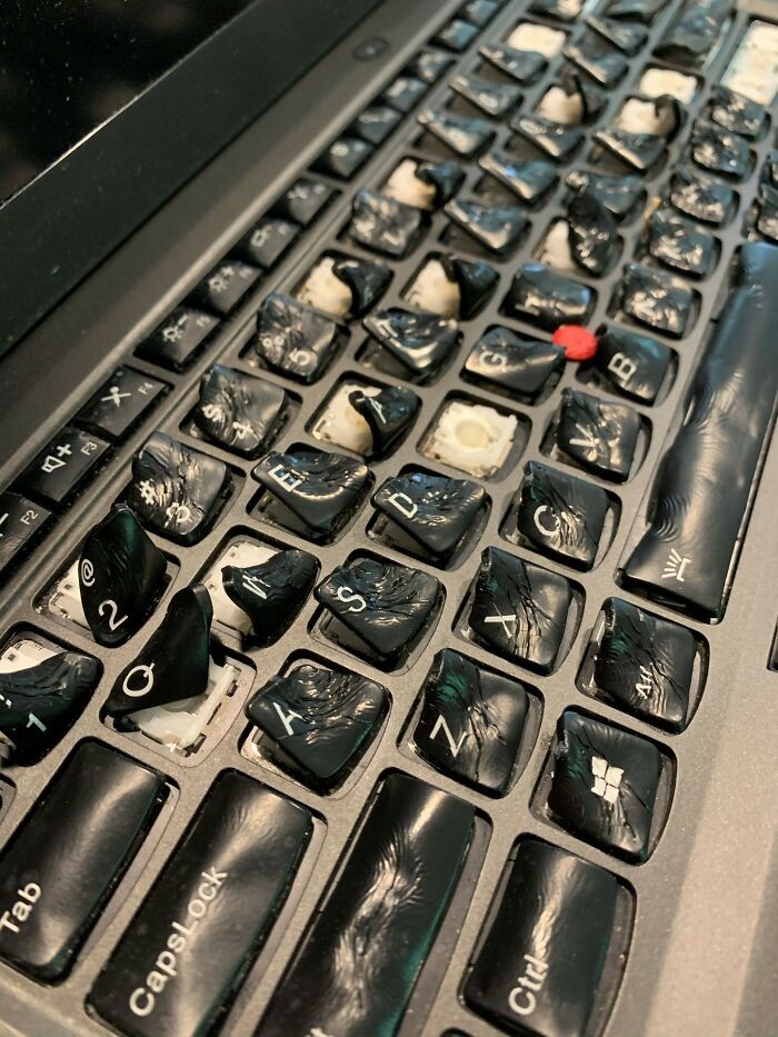 Sang pemilik ngakunya ketumpahan kopi panas sehingga bikin meleleh keyboard. Foto: dok Reddit via Bored Panda