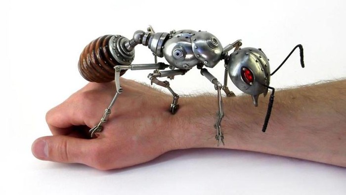 Dalam proses pembuatannya, Igor menggunakan bagian-bagian dari barang elektronik hingga mobil maupun sepeda yang tak terpakai. Dok. Boredpanda.