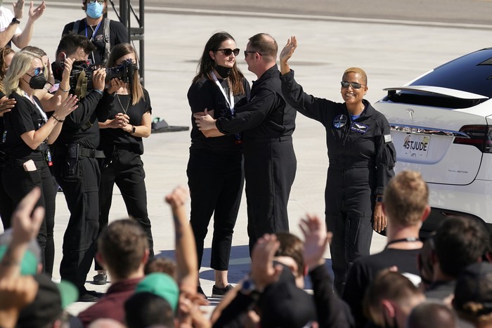 Ada juga Hayley Arceneaux selaku asisten di St Jude Children's Research Hospital. Hayley yang berumur 29 tahun pernah menderita kanker tulang pada umur 10 tahun. Isaacman ingin mengumpulkan sumbangan uang untuk rumah sakit tersebut. Foto: AP