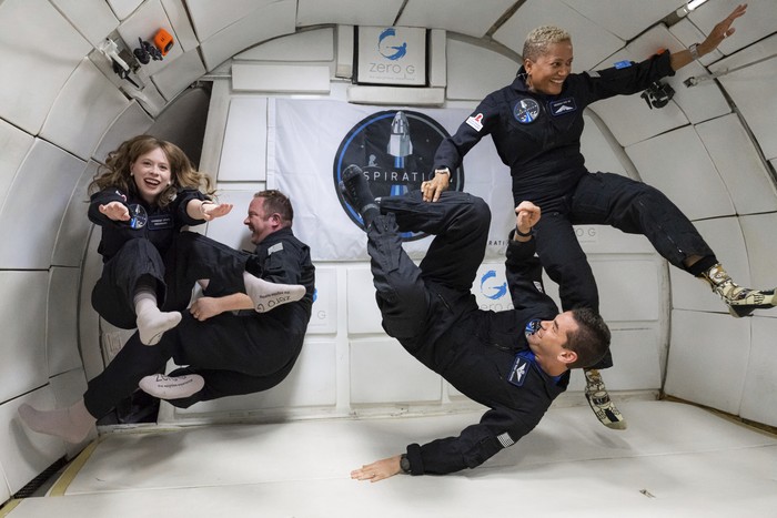 Penerbangan ini mencatat sejarah karena semua penumpangnya merupakan warga sipil yang tidak dilatih untuk menjadi astronaut NASA. Foto: AP