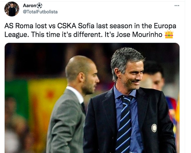 AS Roma di Europa League mengalahkan CSKA Sofia 5-1, padahal musim lalu kalah. Jose Mourinho dianggap sebagai faktor pembeda. Foto: Twitter