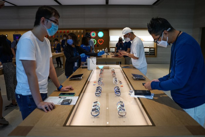 Apple Orchard turut memajang Apple Watch 7. Foto: Feline Lim/Getty Images