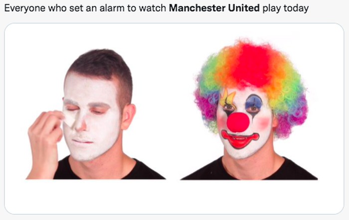 Fans Setan Merah juga kena olok-olok. Menonton Manchester United seperti menonton badut. Foto: (Twitter)