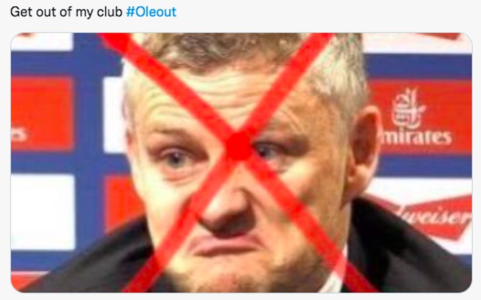 Sepertinya sudah langganan kalau Manchester United kalah makan tagar #OleOut dan memenya akan bertebaran di Twitter. Foto: (Twitter)