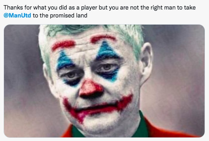 MemeΒ Ole Gunnar Solskjaer jadi Joker karena performa Manchester United yang memble. Foto: (Twitter)