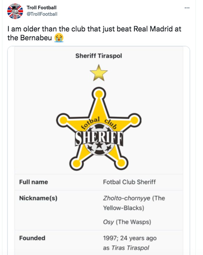 Fans Real Madrid sampai googling karena tidak tahu apa itu klub Sheriff. Foto: Twitter