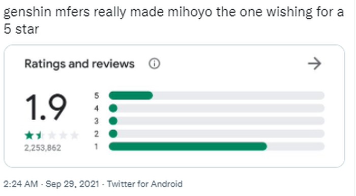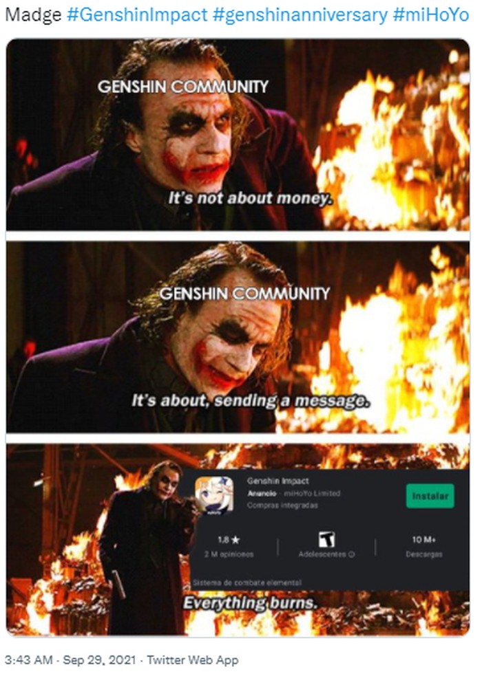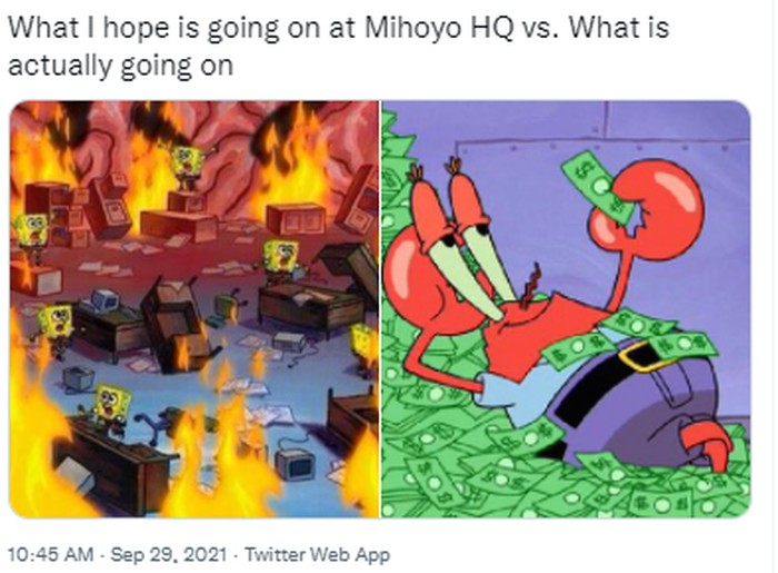 Ayo miHoYo lakukan sesuatu, biar para penggemar tidak kecewa. Foto: (Screenshoot Twitter).