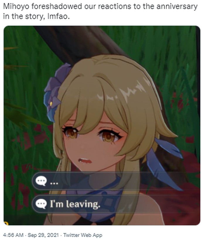 Kecewa kan tuh jadinya. Serius dikit dong miHoYo. Foto: (Screenshoot Twitter).