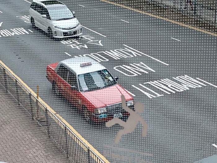 Taksi menabark gambar. Foto: Edas Wong via Sadanduseless