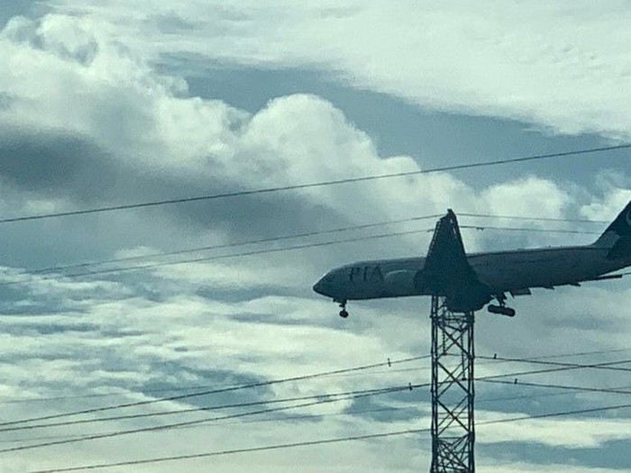 Pesawat nyangkut di kabel listrik. Foto: Reddit