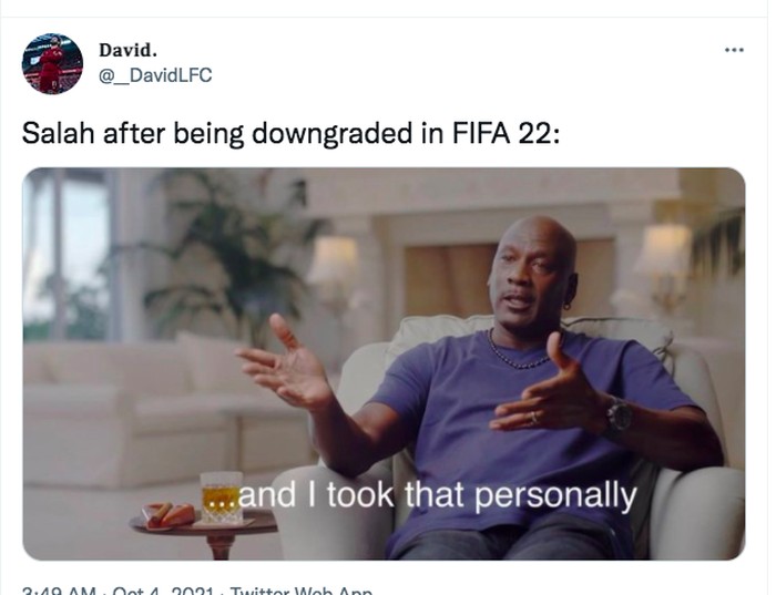 Rating Mo Salah diturunkan di game FIFA 22, mungkin dia jadi termotivasi membuktikan diri. Foto: Twitter