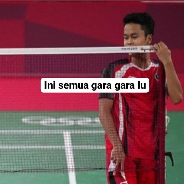 Ginting suka bikin kesalahan dengan net. Akhirnya ada meme ini. Foto: (Twitter)
