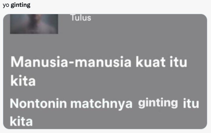 Tweet Ginting bilang, "Ya udah lah ya," selalu jadi meme kalau Ginting kalah. Foto: (Twitter)