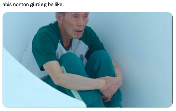Kakek Squid Game sekarang sudah jadi meme. Cocok banget menggambarkan suasana hati netizen karena Anthony Ginting kalah lawan Kantaphon Wangcharoen dari Thailand. Foto: (Twitter)
