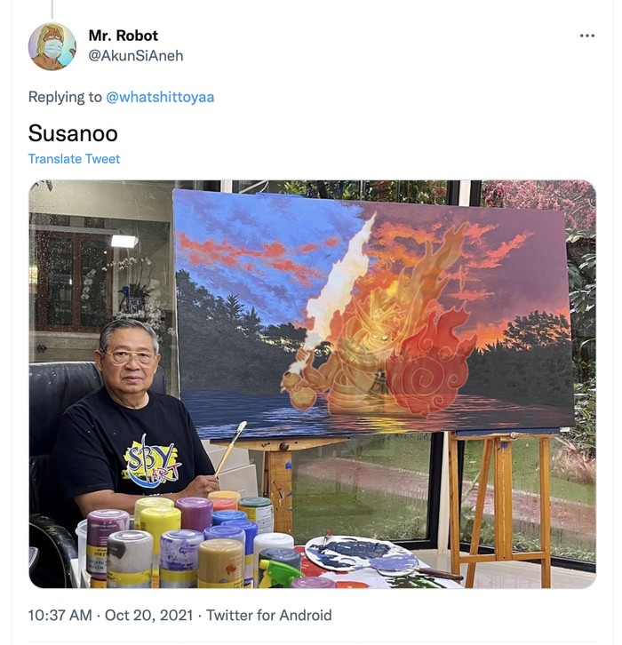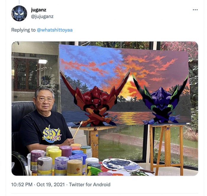 Mengagumi lukisan Langit Senja yang dibuat Presiden RI ke-6 Susilo Bambang Yudhoyono (SBY) sejumlah netizen menambahkan unsur anime ke dalamnya, seperti apa?