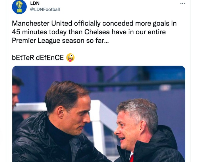 Kebobolan 4 gol di babak pertama sudah lebih dari seluruh gol yang masuk ke gawang Chelsea sejauh ini di Liga Inggris. Foto: Twitter