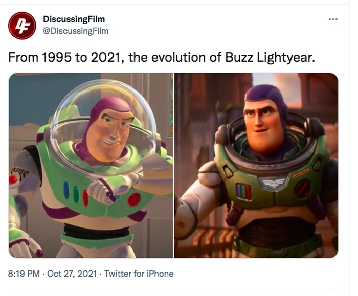 Penampilan Buzz Lighyear dulu di film lama dan yang akan datang terlihat berevolusi. Foto: Twitter