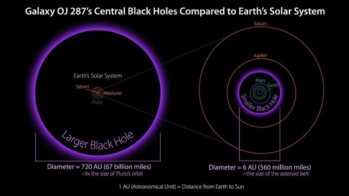 4. Menurut NASA, ada tiga jenis Lubang Hitam, dari 'relative squeakers' hingga lubang hitam yang mendominasi seluruh galaksi. Lubang hitam terkecil disebut Primordial, besarnya ukuran 1 atom hingga seukuran gunung. Lubang hitam paling umum adalah lubang hitam Stellar dan bisa mencapai 20 kali ukuran Matahari kita. Supermassive black holes adalah lubang hitam terbesar di pusat galaksi, bisa lebih dari 1 juta kali dari Matahari.Β Foto: NASA