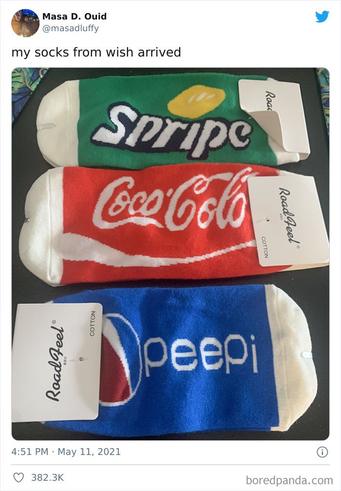 Kaos kaki brand minuman soda. Foto: Boredpanda