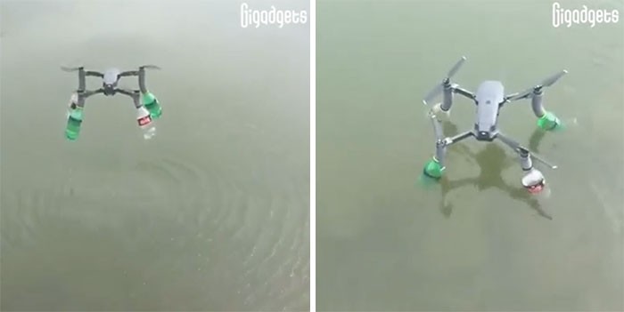 Drone ini dipasangi pelampung dari botol minuman agar tidak tenggelam. Foto: Bored Panda