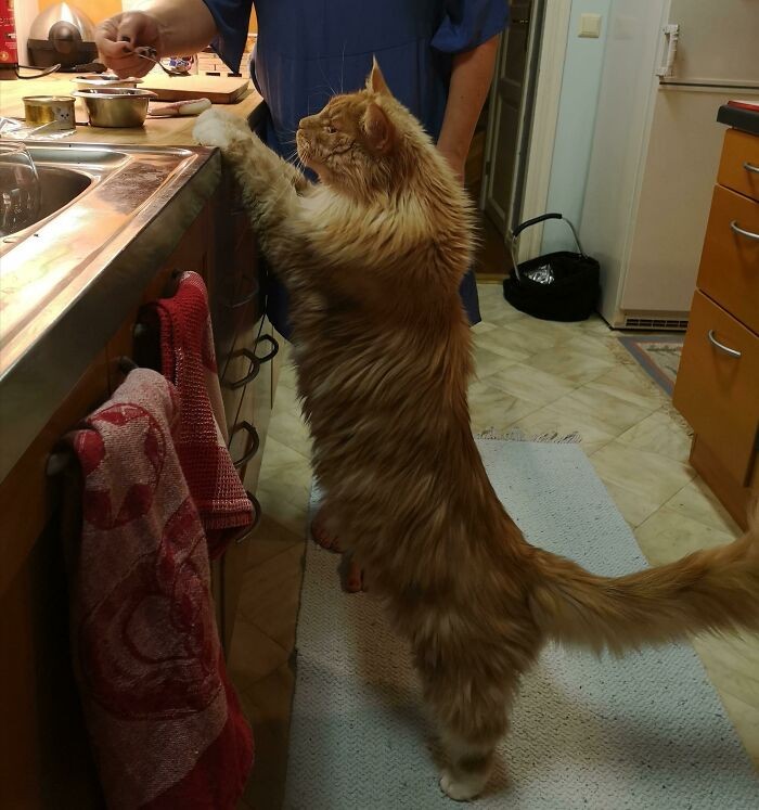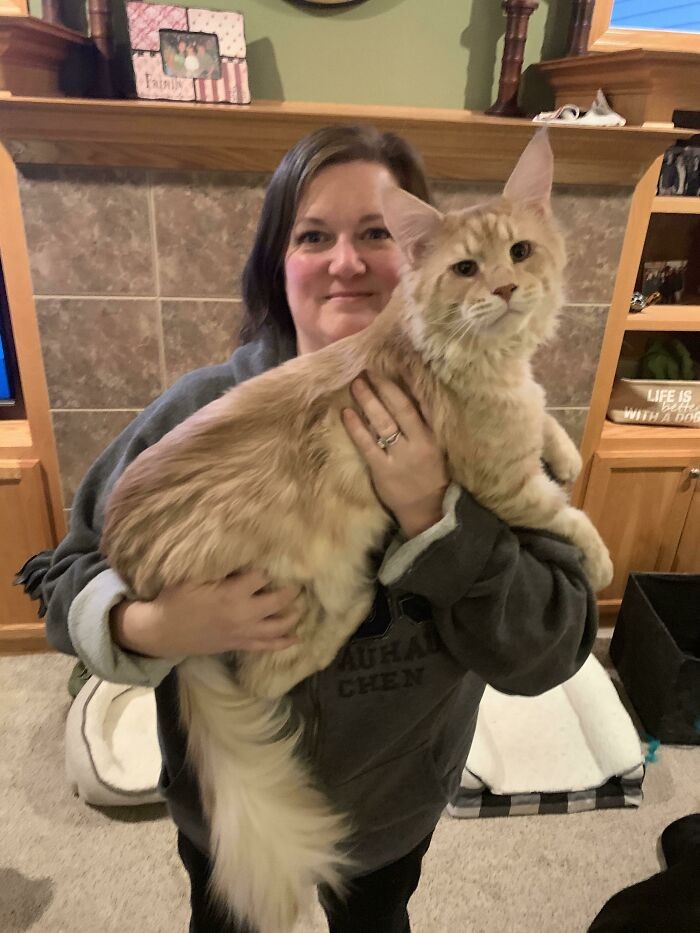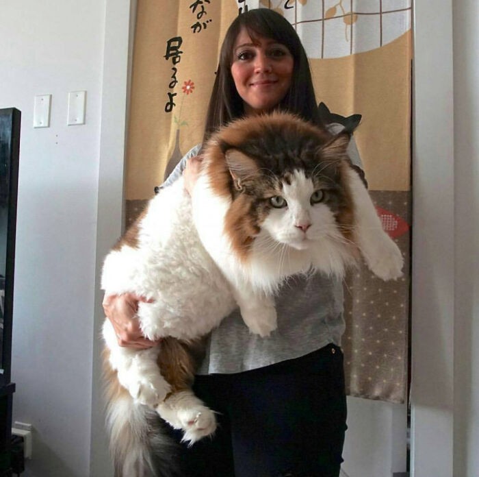 Ada beberapa jenis kucing yang memiliki ukuran lebih besar dibanding kucing biasa bahkan sama dengan ukuran badan manusia. Foto: Boredpanda