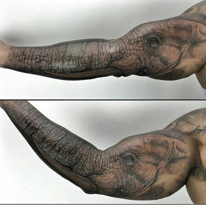 Lengan tangan disulap jadi belalai gajah. Foto: Boredpanda