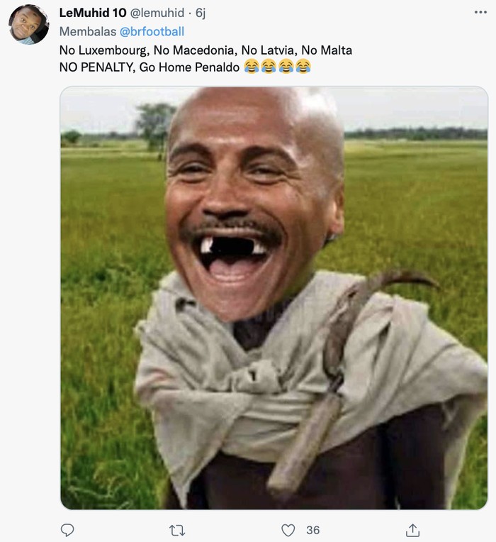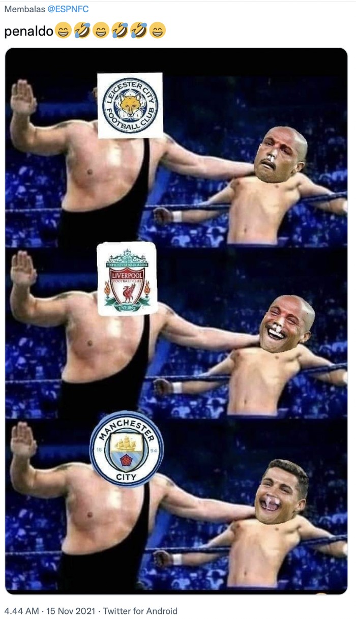 Netizen mengejek Ronaldo butuh lawan tim lemah agar bisa mencetak gol.Β Foto: Twitter