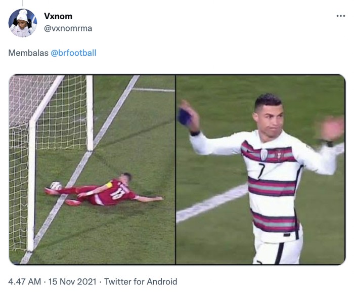 Tampaknya kesialan Ronaldo saat golnya dianulir di pertemuan pertama lawan Serbia terus berlanjut hingga saat ini.Β Foto: Twitter