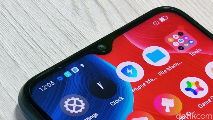 Realme Narzo 50a mengusung notch tetesan air, di sanalah kamera 8 MP berada. Foto: Adi Fida Rahman/detikINET