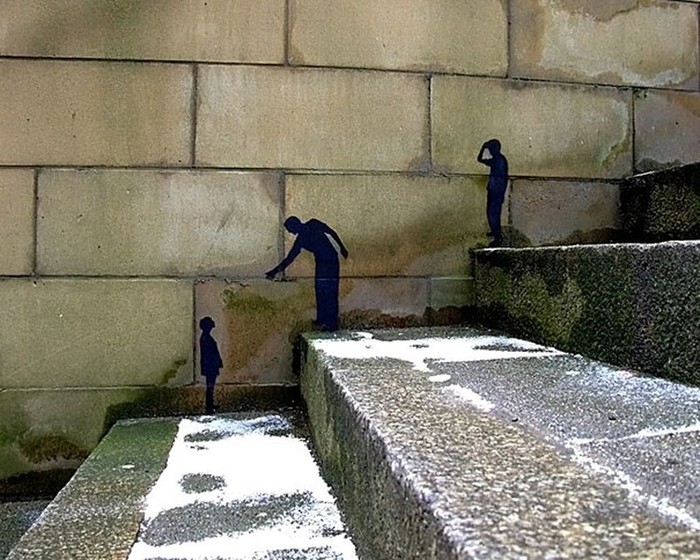 Tangga yang menjadi lebih hidup dengan ilustrasi beberapa manusia. Foto: Imgur