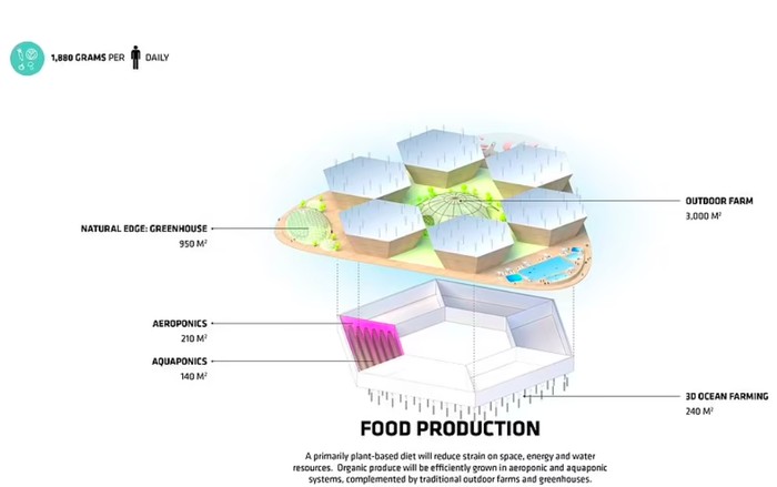 Ada semacam kandang di bagian bawah untuk menghasilkan makanan laut. Tanaman untuk konsumsi ditumbuhkan dengan sistem yang canggih. Foto: Daily Mail