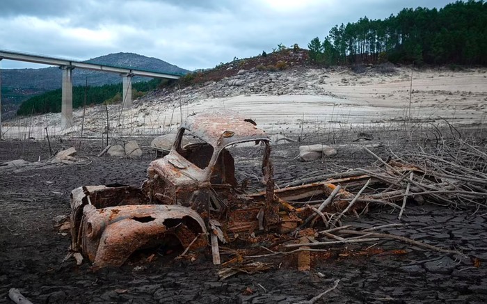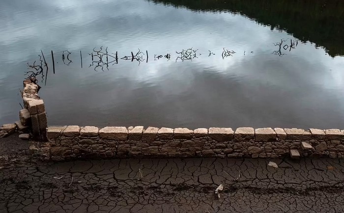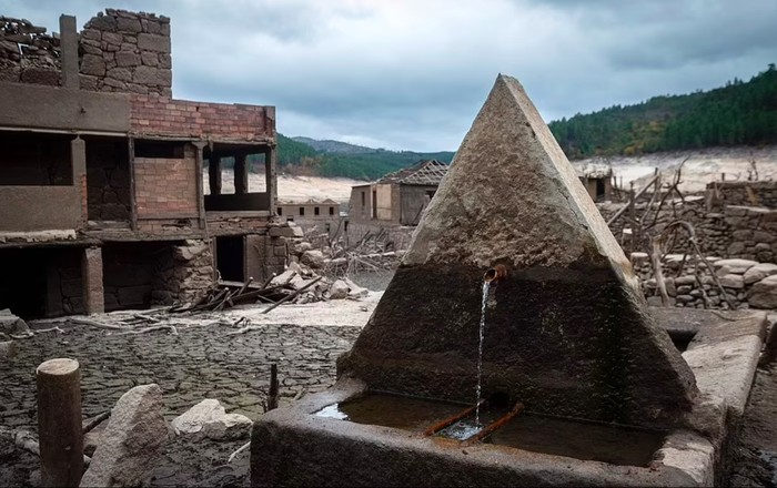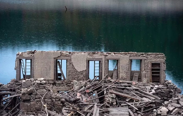 Tak disangka, 30 tahun kemudian, sebuah gambar langka menunjukkan rendahnya permukaan air di waduk Lindoso mengungkap sisa-sisa bangunan yang dulunya adalah rumah, lahan pertanian dan lumbung milik penduduk Aceredo sebelum dipaksa menyerahkan tanah mereka. Banyak dinding bangunan telah runtuh, tetapi tak sedikit pula beberapa struktur tetap utuh. Foto: AFP via Daily Mail