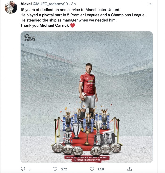 "Sungguh mengagumkan perjalanan singkat Carrick sebagai pelatih," puji netizen ini. Foto: Twitter