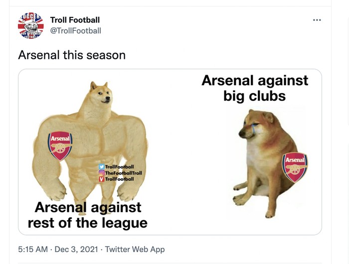 Lawan Arsenal selalu ringan saja, demikian sindir meme ini. Foto: Twitter