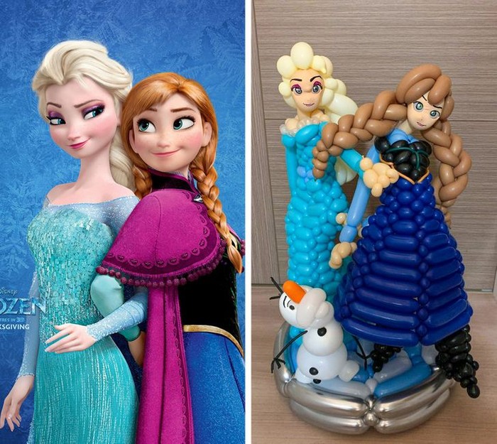 Ratu Elsa dan Putri Anna dari film animasi Frozen. Foto: Instagram/balloonnaart