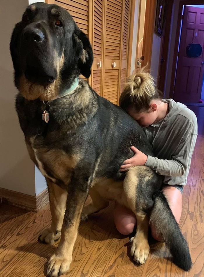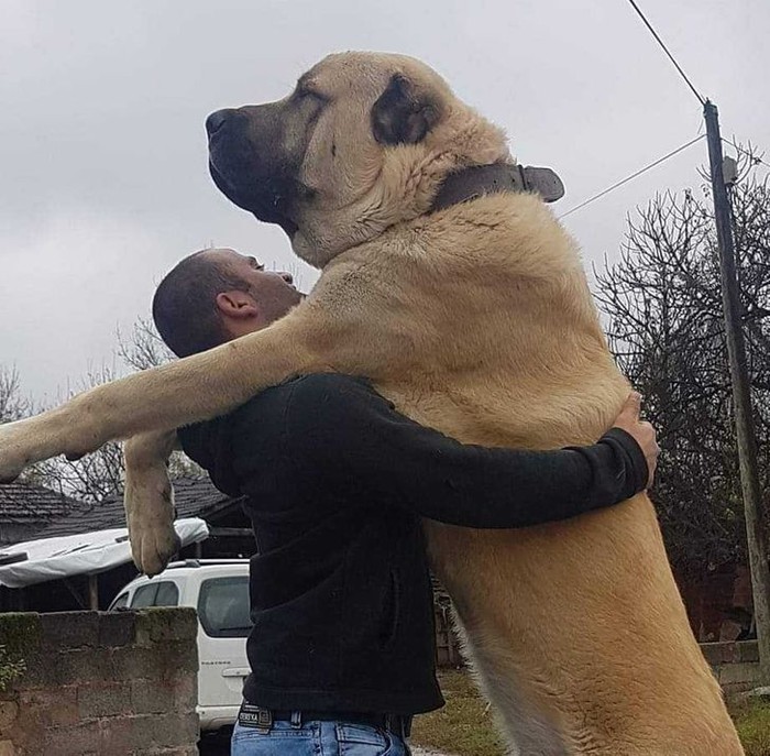 Wow, anjingnya melebihi tinggi tubuh manusia. Foto: Brightside