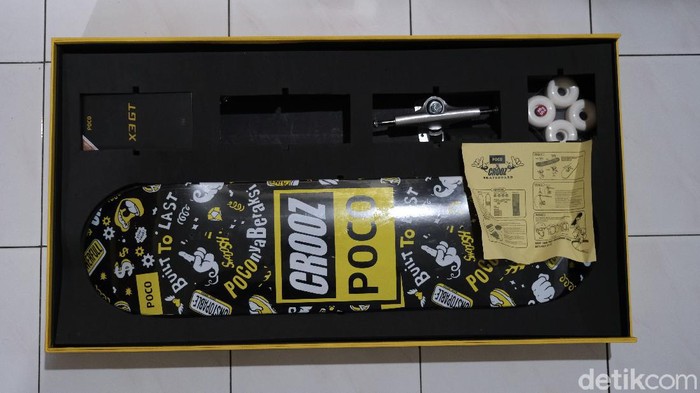 Selain Poco X3 GT, di dalam paket penjualan ada skateboard Crooz dengan desain khusus. Foto: detikINET/Anggoro Suryo Jati