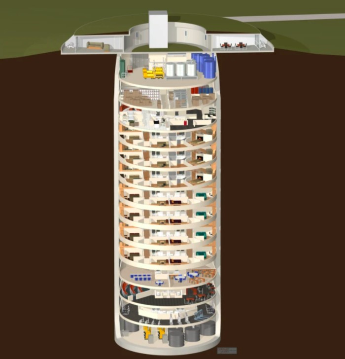 Silo rudal diubah menjadi menjadi hunian bawah tanah berlantai 15, yang mampu menampung hingga 75 orang setidaknya selama beberapa tahun. Foto: Survivalcondo.com